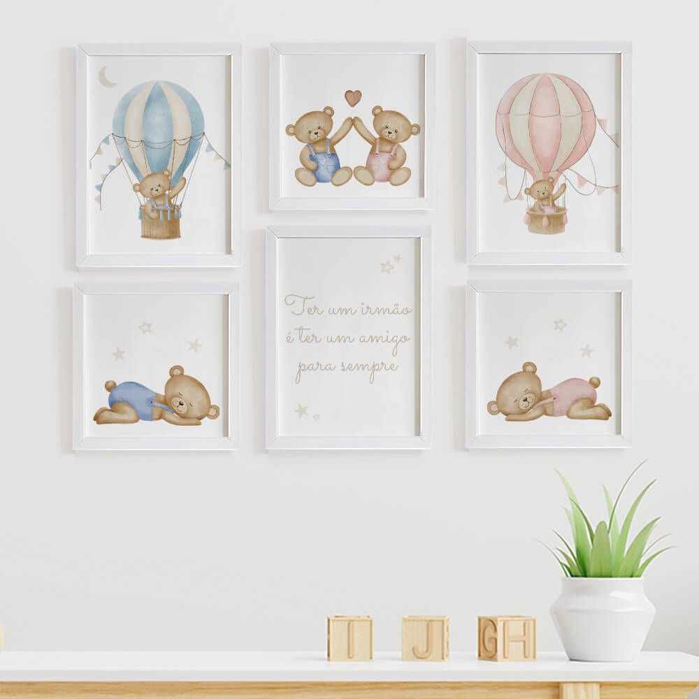 Quadros para quarto de irmãos gêmeos Ursinhos Ter um irmão é ter um amigo para sempre