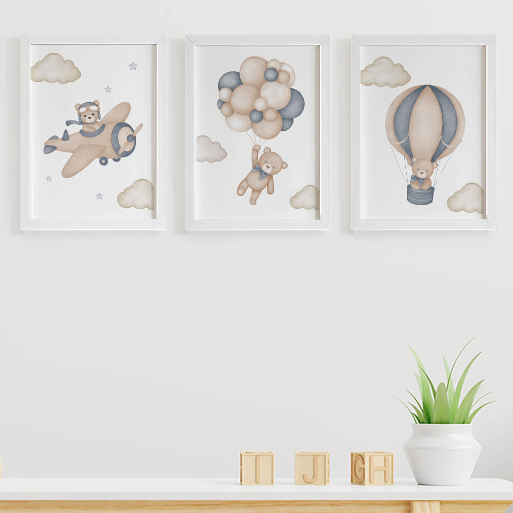 Quadros para quarto de bebê Ursinho Aviador Balão
